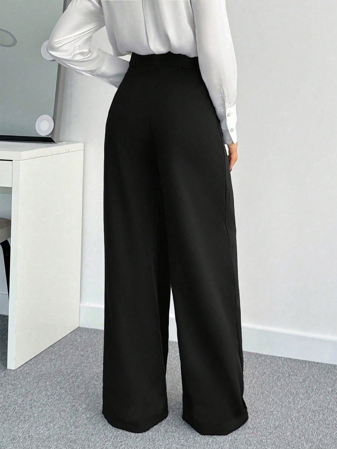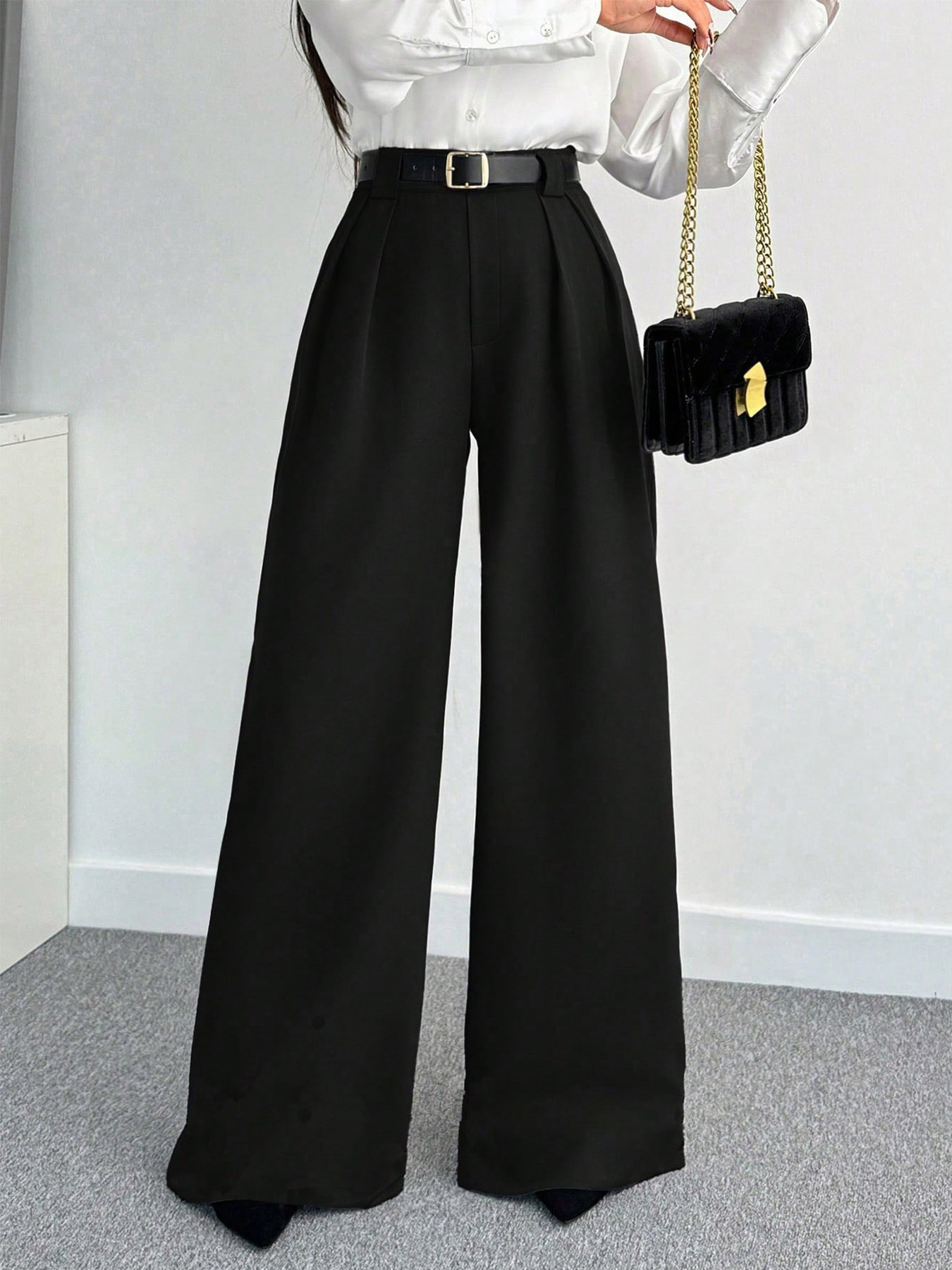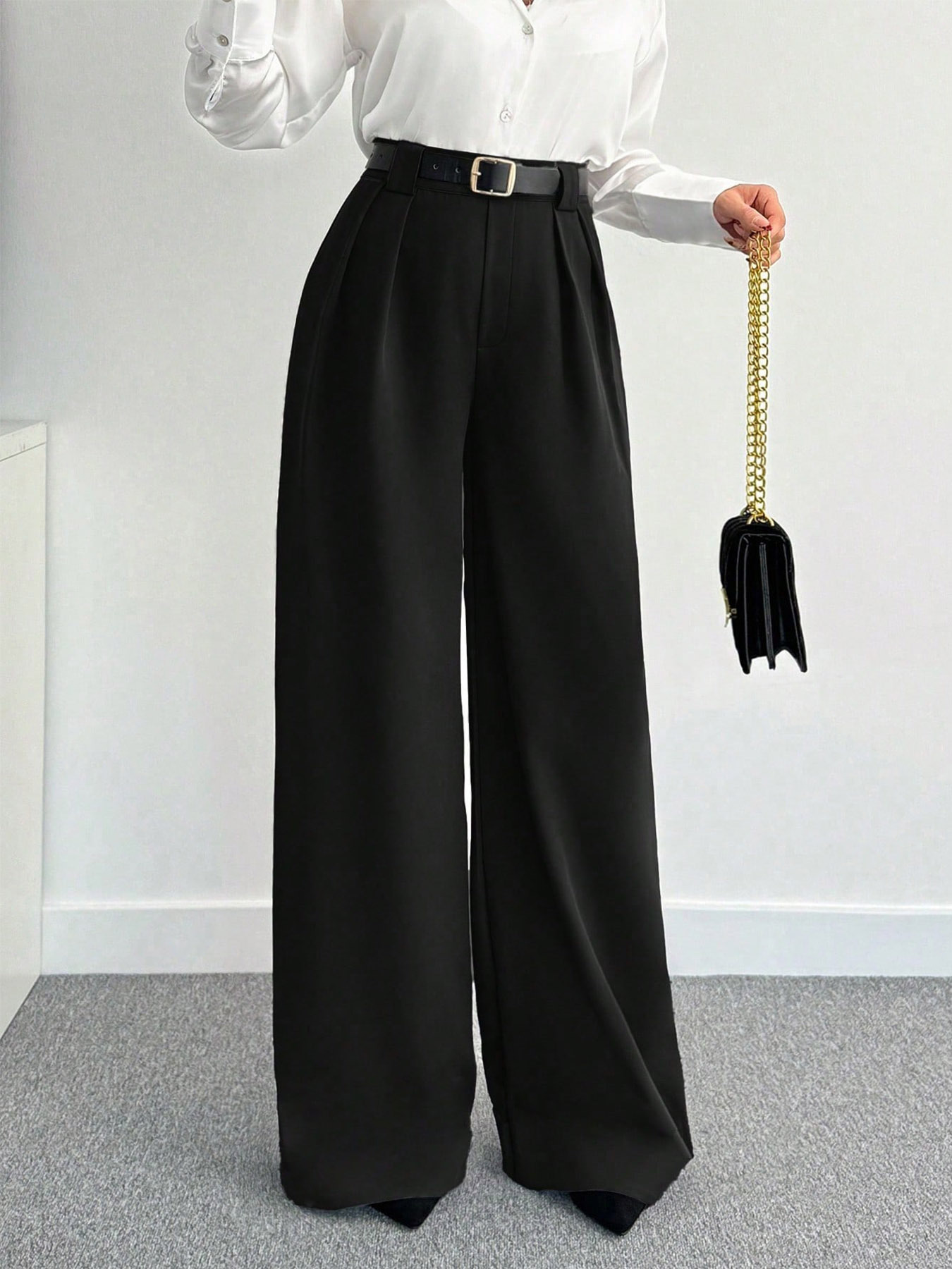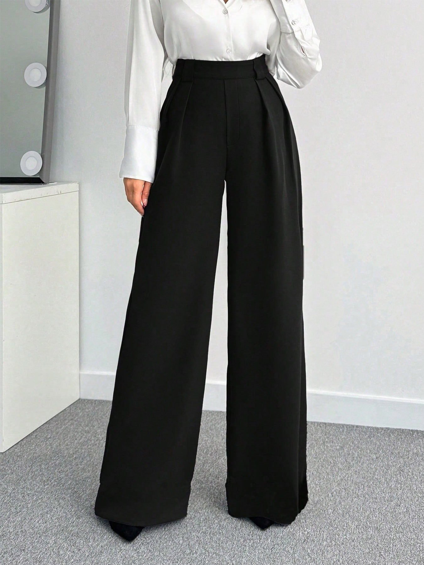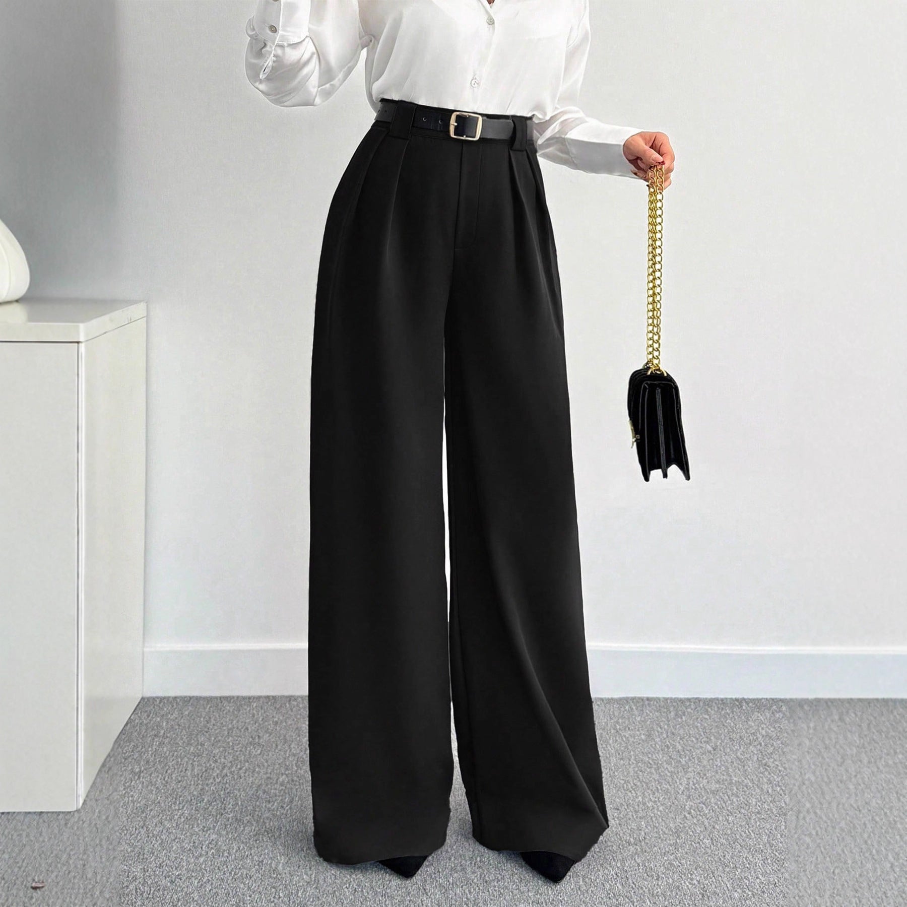 Women's Loose-fit, Figure-flattering Solid-color High-waist Wide-leg Pants